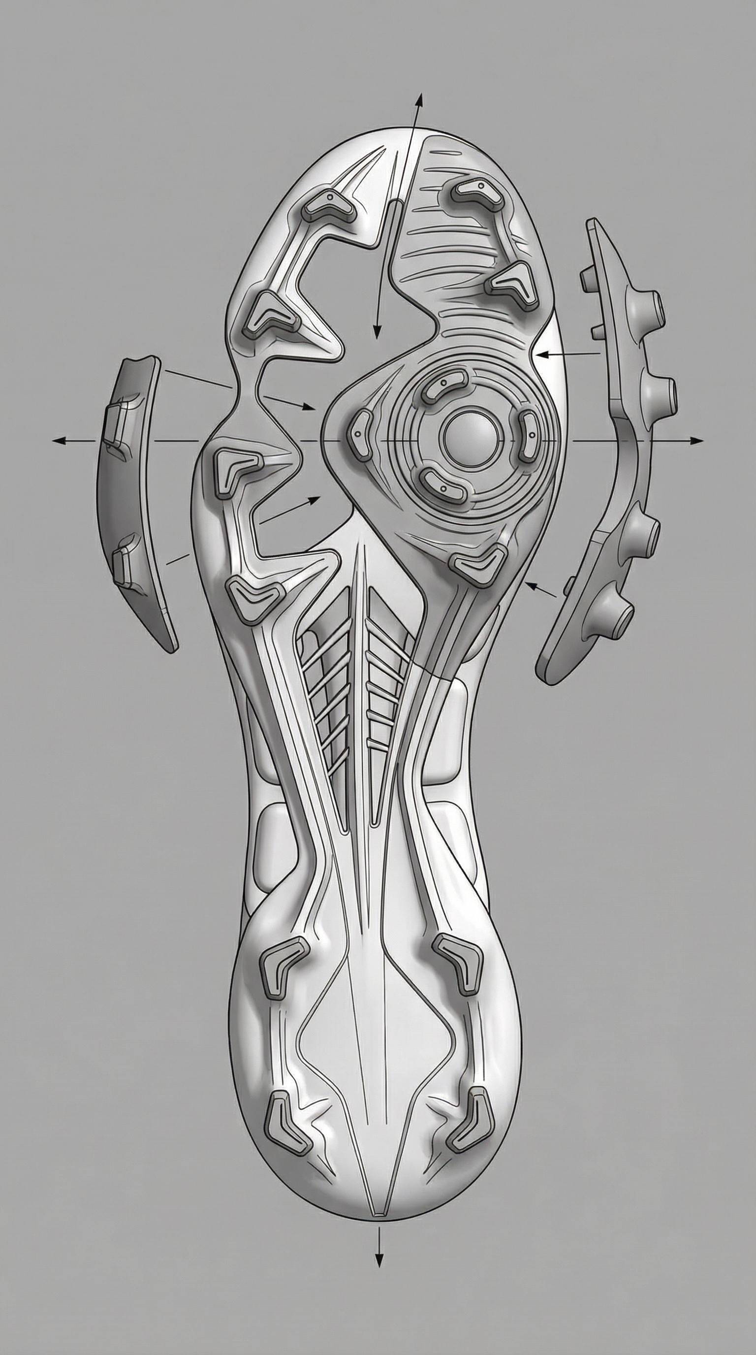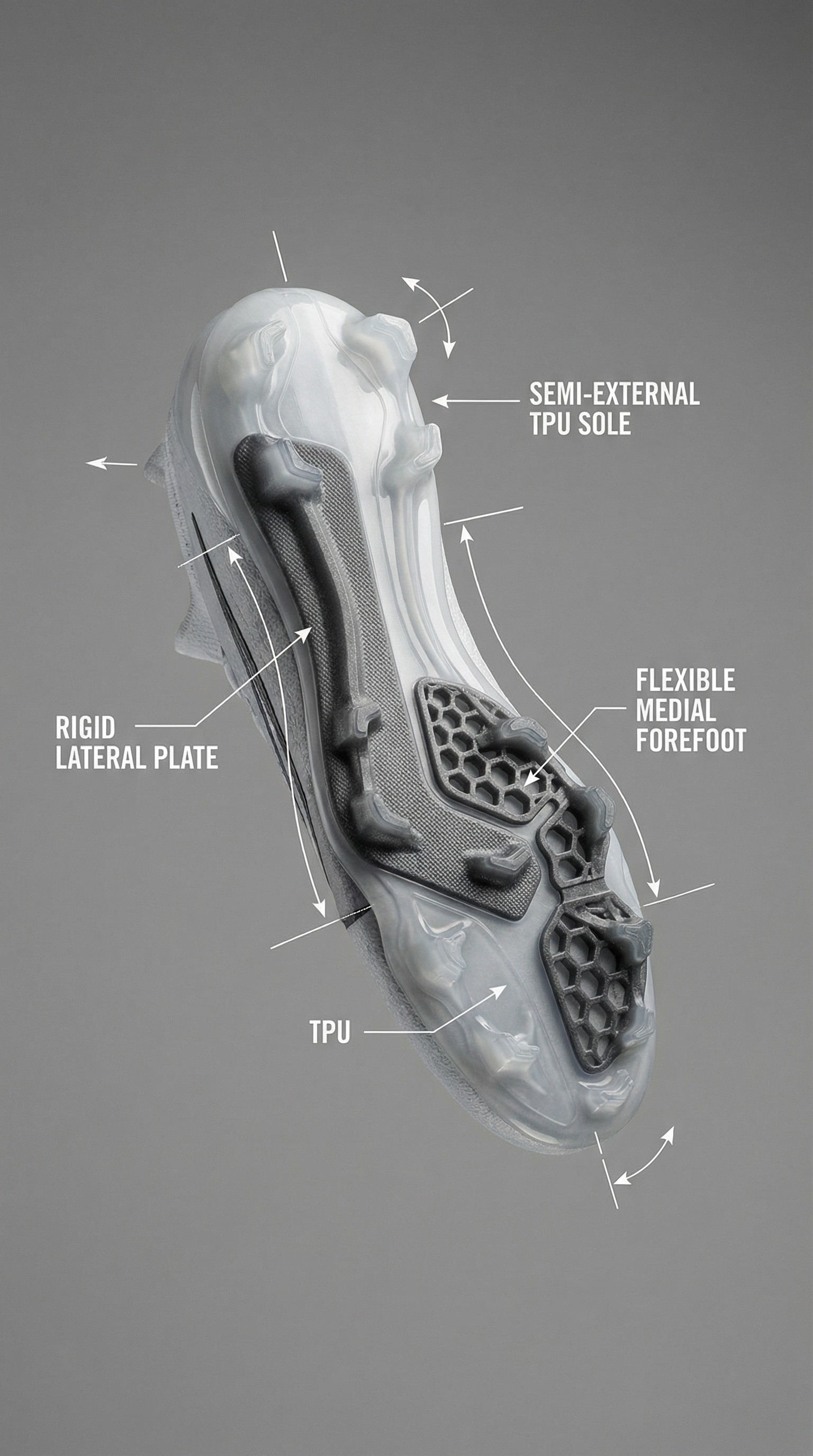 The result is a modular forefoot system engineered to manage torsion, ground penetration, and energy return without restricting natural movement.